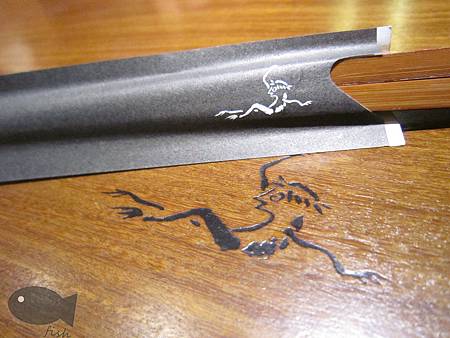 桌子跟筷套都科上了店的LOGO圖像,看起來像是河童,