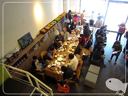 裡面一樓挑高區,空間 上讓人覺得很寬敞舒適,大桌子雖然會跟不認識的客人坐在同一張桌子