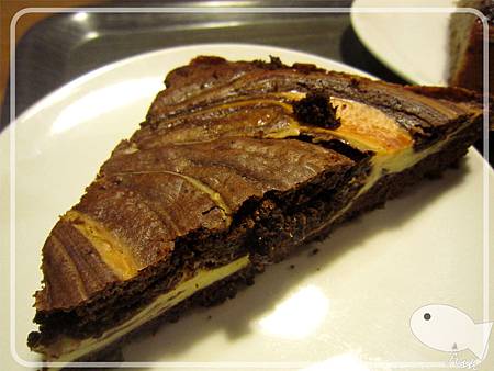 蛋糕很扎實,使用苦甜巧克力,入口味道不會甜膩,