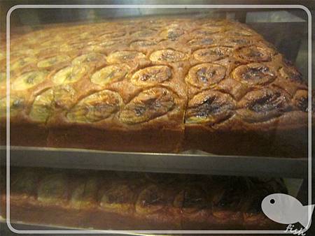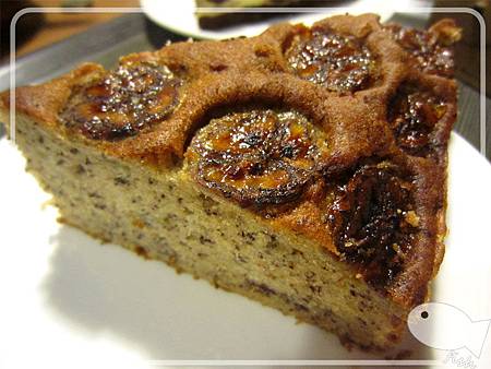 上面佈滿著糖煮過的香蕉片,香蕉蛋糕味道黑長濃郁,